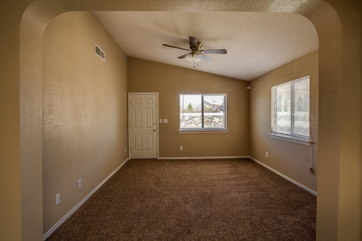 Welcome to this stunning rental home located in the vibrant city of El Paso, TX. This Northeast Rental Home is just minutes away from Ft. Bliss and offers a host of amenities designed for your comfort and convenience. With three spacious bedrooms and two full bathrooms, this home provides ample space for your needs. The home features refrigerated air, ensuring a cool and comfortable environment during those hot Texas summers. The master bedroom boasts a walk-in closet, providing plenty of storage space. Ceiling fans are installed throughout the home, adding an extra layer of comfort. The property also features low maintenance landscaping, allowing you to enjoy the beauty of your surroundings without the hassle of upkeep. This home is perfect for those seeking a blend of comfort and convenience in their living arrangements.